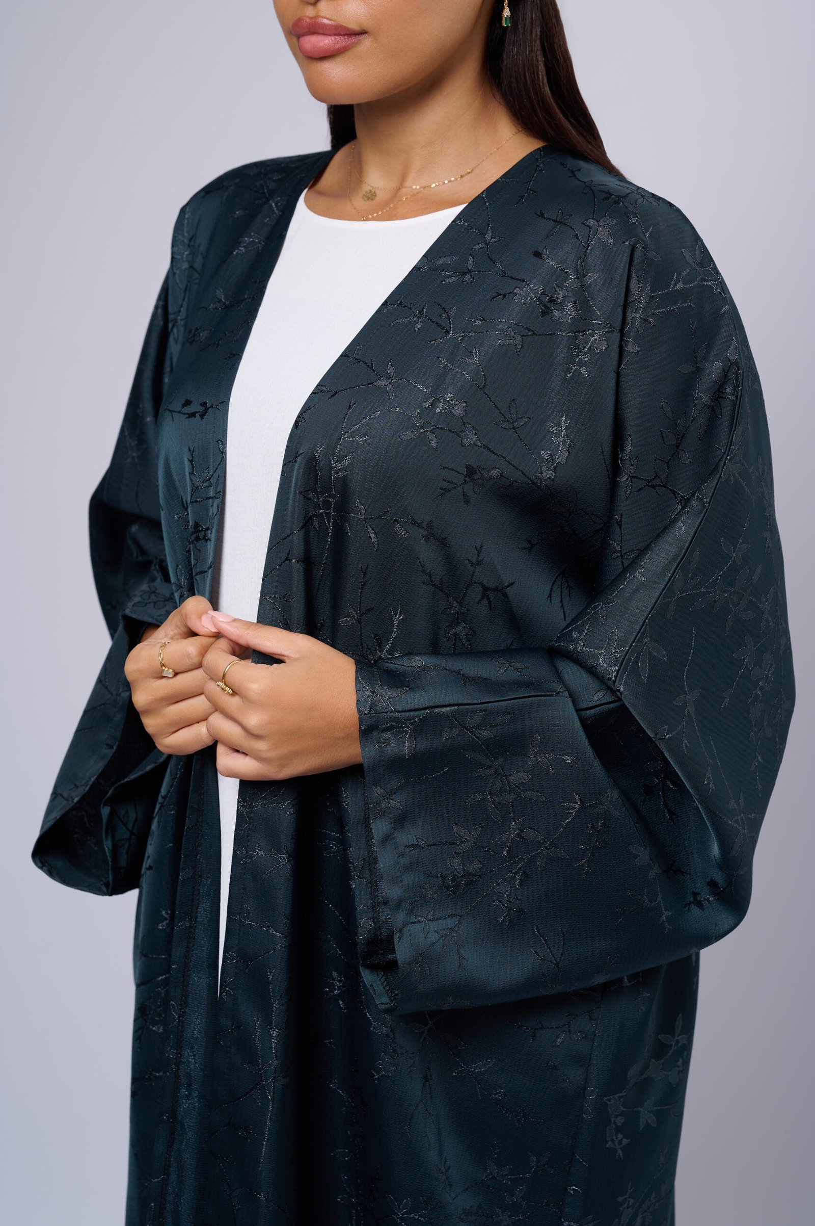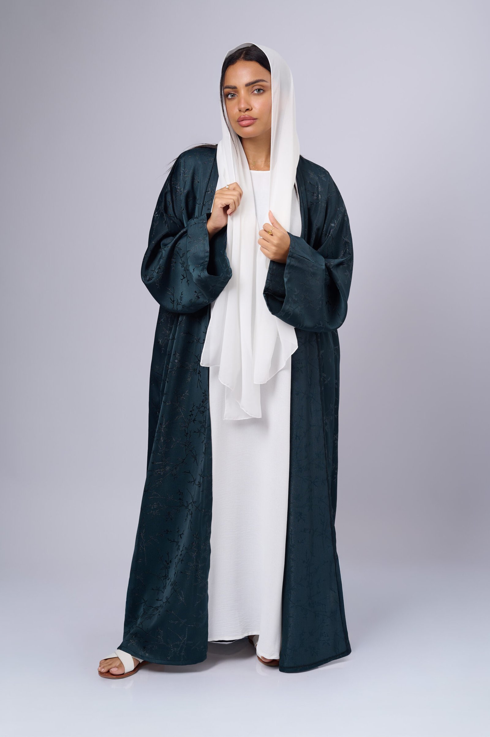 Effortless sophistication meets timeless modesty in our Premium Nida Open Abaya in a captivating forest green hue.