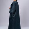 Crafted from luxurious Nida fabric, this abaya drapes beautifully with a soft, fluid texture that feels as elegant as it looks. The subtle sheen of the material enhances its depth, while the open front design offers versatility — perfect for both formal occasions and everyday refinement.