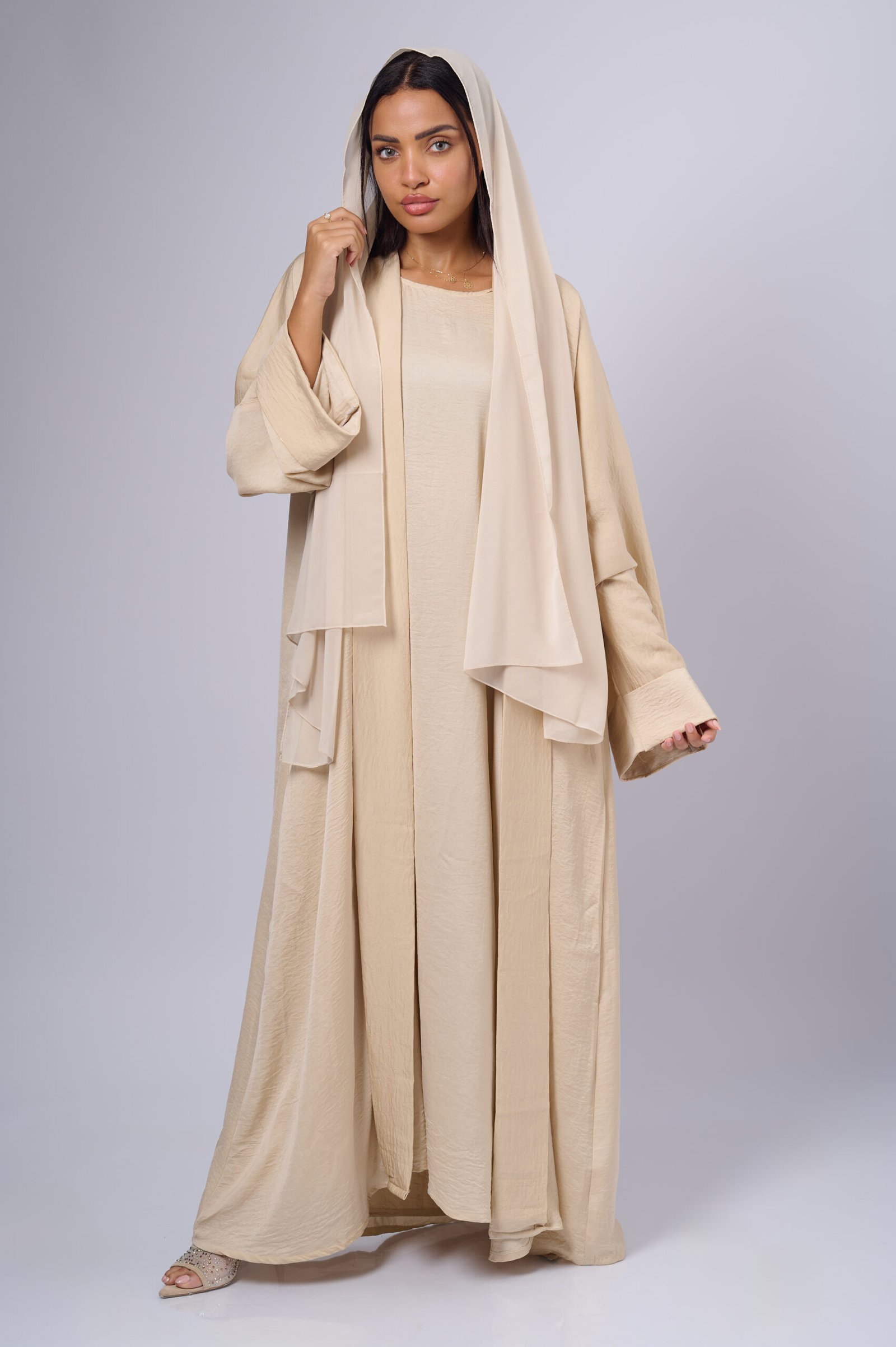 Simplicity meets timeless sophistication with this Classic Beige Open Abaya, designed for effortless elegance and everyday comfort.